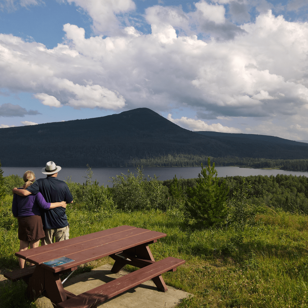 The day's travel is continuing through the historic Cariboo Gold Rush area. We will travel through forest areas with McLeese Lake about halfway through the drive. McLeese Lake is a very attractive lake with an outdoor Information Centre. There is not much public access to the lake, as most access to the lake is through the private campgrounds. There is a 1st Nations Heritage Site located 35 km north of Williams Lake.