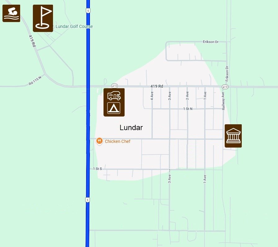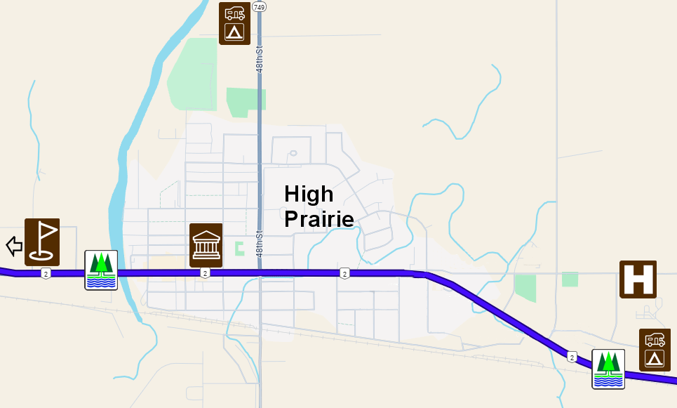 This section is a good example of why the highway is called the Northern Woods & Water Highway. There is an abundance of trees and lakes which are great for relaxing the soul. Lots of oxygen in the air. The Athabasca golf course is a premium golf course that you may want to take in 9 holes for a break in today's travels.