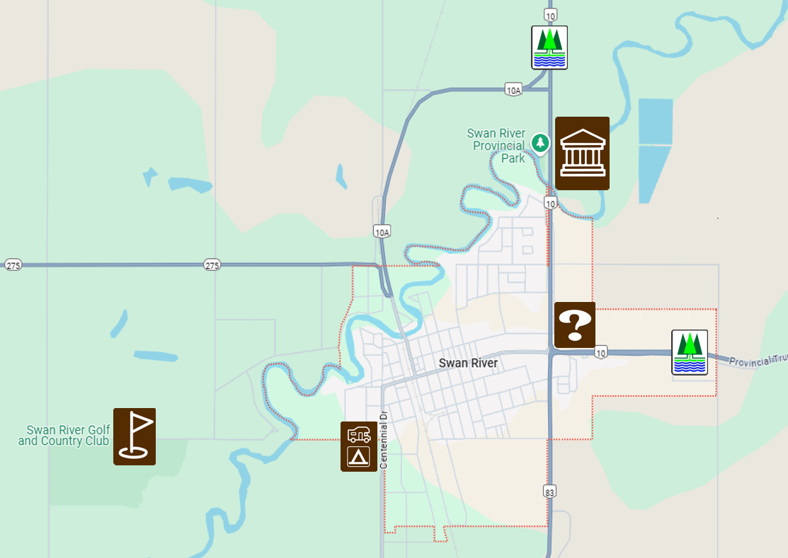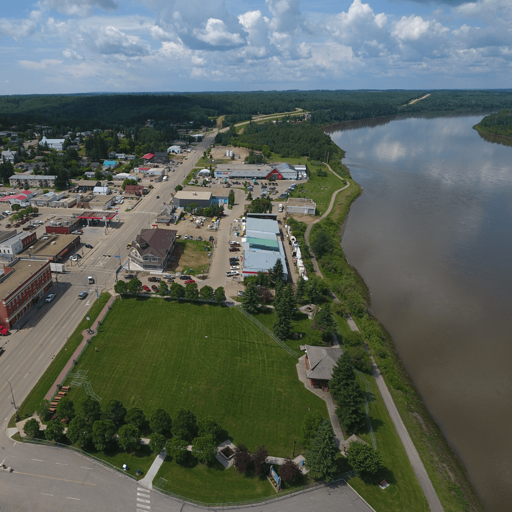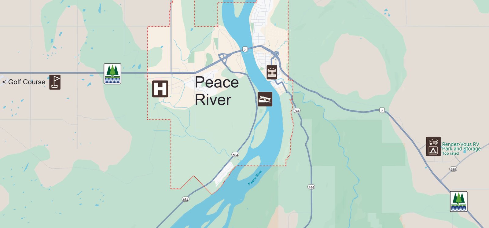 Proceeding west and then north from High Prairie, we pass through numerous small towns, McLennan was the birthplace of the Northern Woods and Water Highway as a gentleman from that community worked diligently to get the route recognized by the provinces of MB, SK, and AB. Donnelly and Falher are two strong French communities in the area. Falher is known for its honey. There are four golf courses, 3 - 9 holes (High Prairie, McLennan and Nampa) and an 18 hole one just west of the town of Peace River. Peace River town was established as a place to ferry across in the early days of the fur trade and well-known gold miner and businessman, Twelve Foot Davis, was instrumental in the town's growth. His gravesite is on the east hill outside of town.