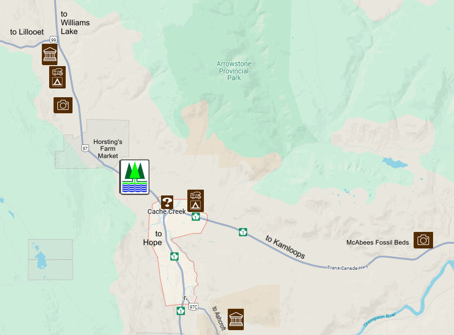 A short distance to the east of Cache Creek on Hwy 1 is the McAbee Fossil Beds and interpretive trail.