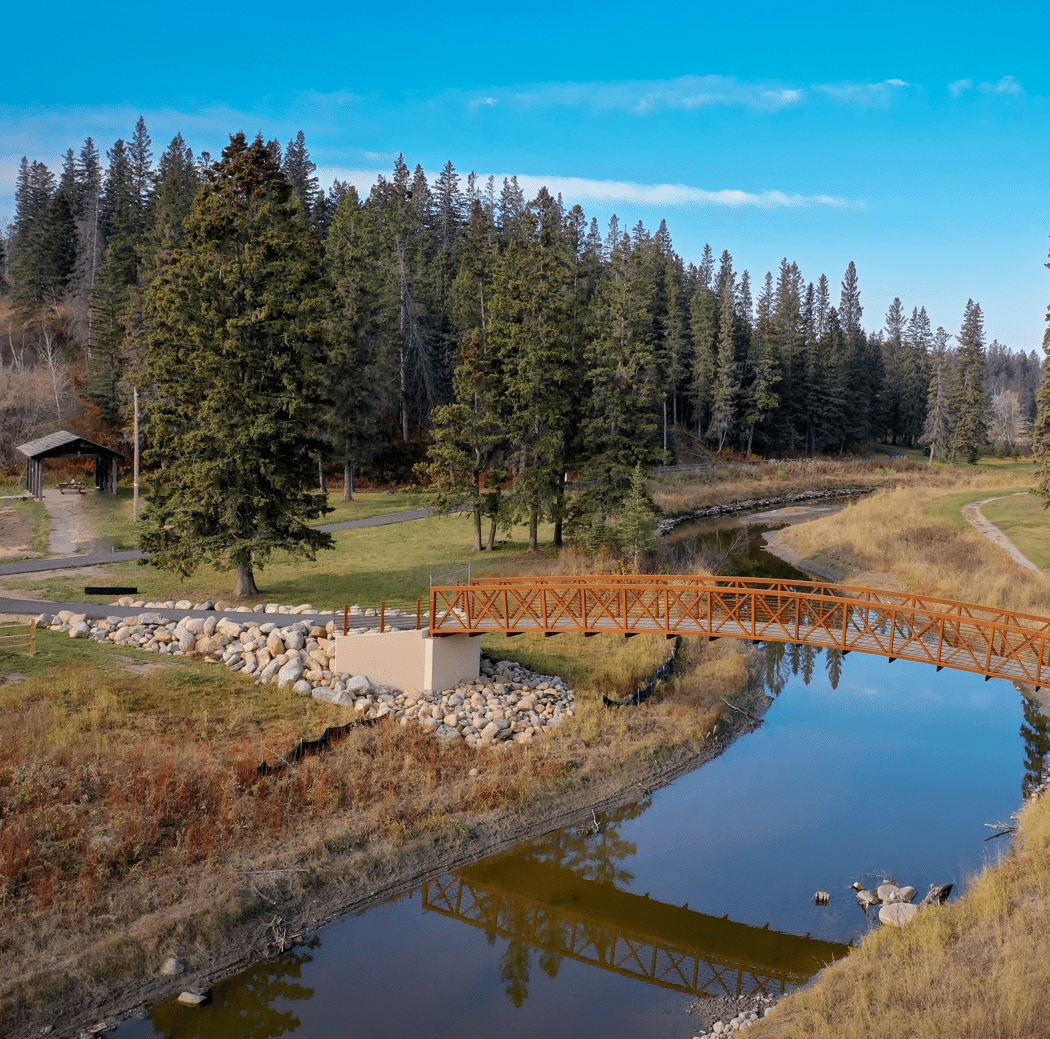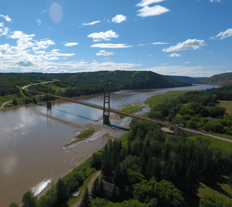 From the traffic circle on the east side of Dawson Creek, head east on Hwy 49, it is a short trip to the Alberta border and cheaper fuel. At Rycroft turn north 22 km to the historic Dunvegan Bridge, then onto Fairview, Berwyn, Grimshaw and into Peace River. The days travel is a loop that will cross the Peace River at Dunvegan and again at Peace River. The river flows north from here to the Northwest territories and eventually the Arctic Ocean.