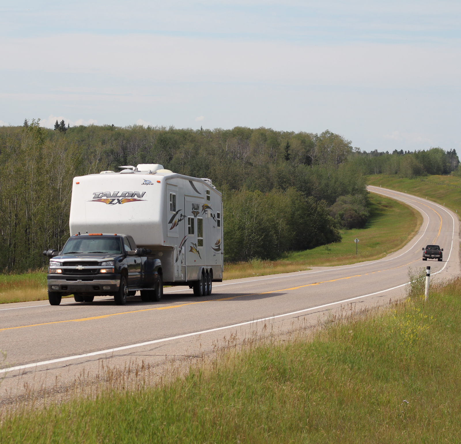 From the Junction of Hwy 63 & 55 which goes north to Fort McMurray to the junction of 55 and 63 going south to Edmonton you could see the heaviest truck traffic, both oil & gas and forestry. It is a short section of only 24 km. The community of Grassland is the place that a lot of vehicles take on fuel and snacks for the drive north.