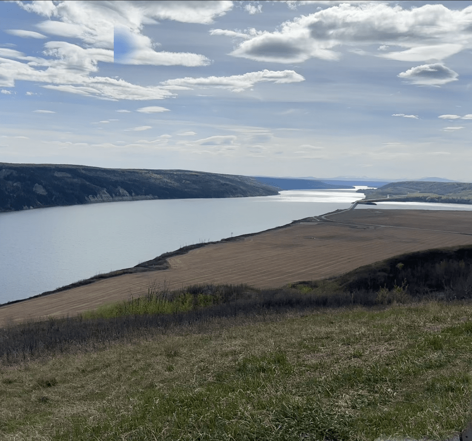 The day includes a short bus trip and a tour of the WAC Bennett Dam before returning and picking up camping units and travelling along the bottom of the Peace River Valley popping up near Charlie Lake. On the northside of Fort St. John, a viewpoint overlooks the Site C Dam. We drop down into the river valley again at Taylor. There is an excellent 18-hole golf course at Taylor. Dawson Creek is our destination for the day. It is Mile Zero of the Alaska Hughway.