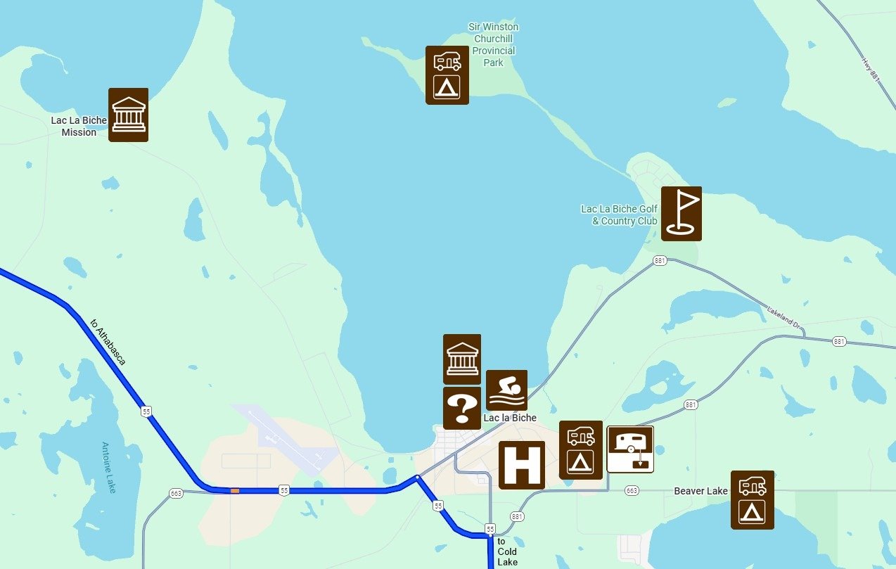 Another day of travel through forest and agricultural land to reach Lac la Biche. You probably noticed a lot of oil and gas activity leaving Cold Lake and also here as well. The Lac la Biche Mission historic site is a very interesting place to visit. It is a little way out of town to the west so you could stop there tomorrow as well. The town of Lac la Biche has a nice beach park area, a nice little museum/visitor centre and lots of fishing opportunities as well as one of the top golf courses on the highway.